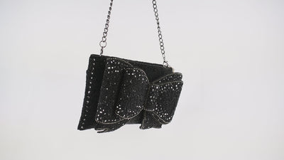 Cute meets cool in this glitzy showstopper! With its oversized sparkly bow and sleek silhouette, this purse brings serious main-character energy. Whether you're dressing up denim or dazzling in heels, it's the cherry on top of any outfit. Wear it as a clutch by sliding your hand beneath the bow, or go hands-free with the shoulder strap.