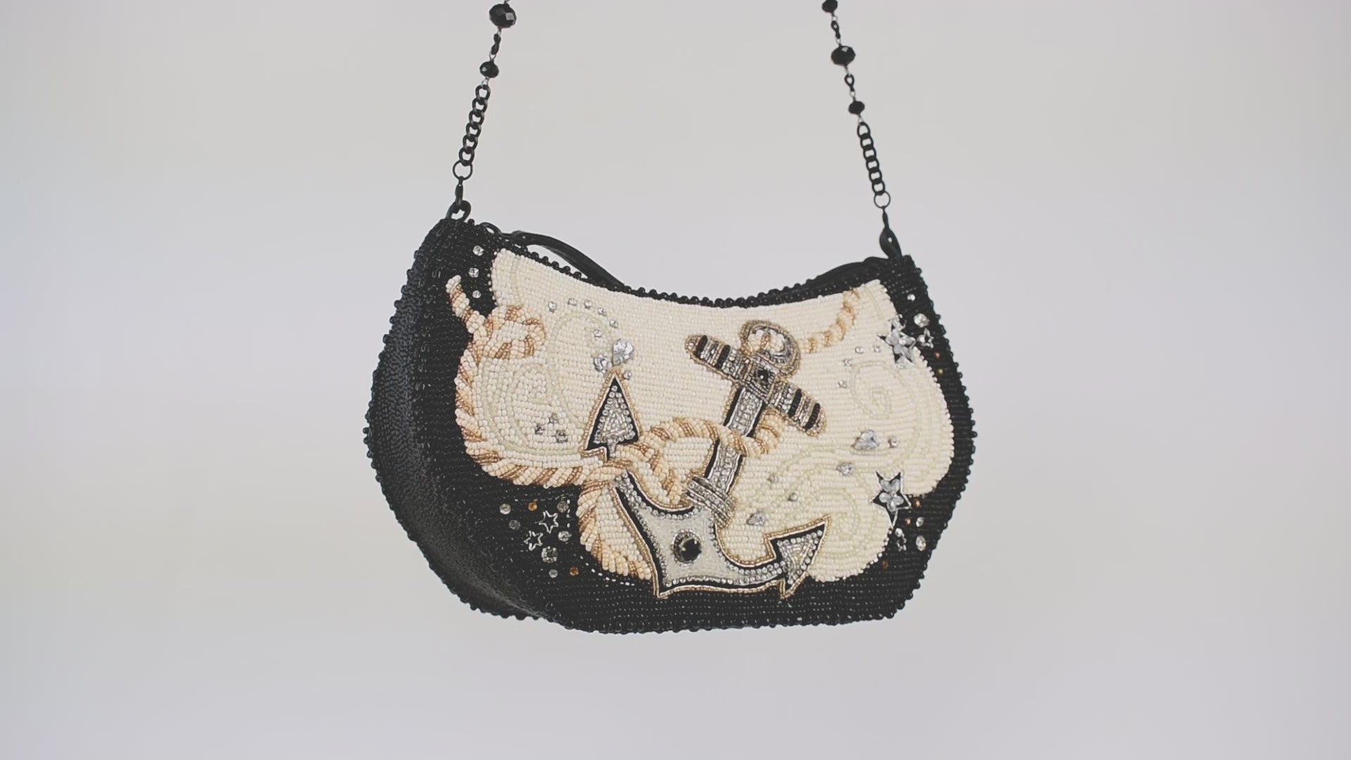 Nautical charm meets sparkling detail with this anchor themed crossbody. Designed with rope accents, shimmering stars, and bold beadwork, it’s finished with a sleek chain strap for versatile wear. Pair it with the matching Hooked Up coin purse for a perfectly coordinated seaside look.