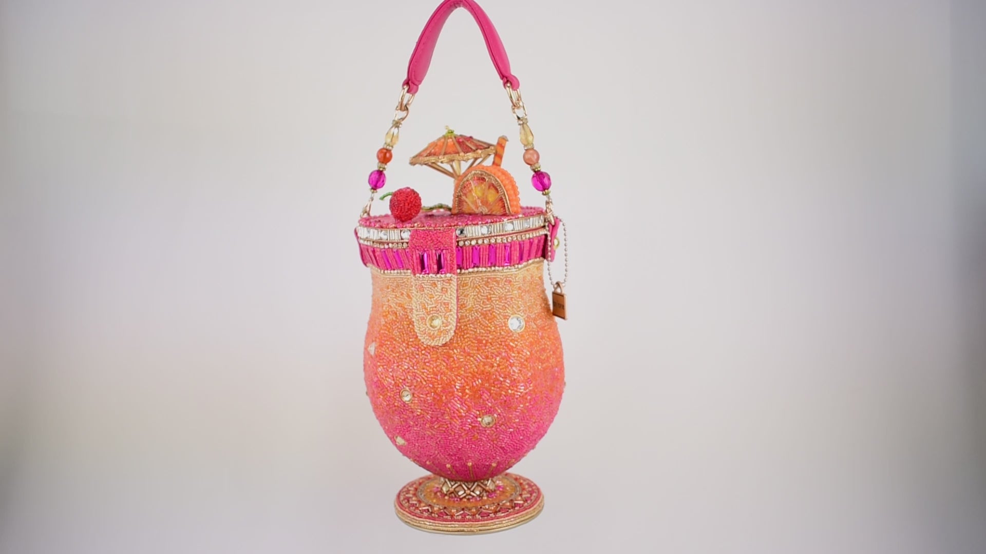 Sip, sparkle, repeat! This fruity, cocktail-inspired beaded bag is a party in your hand, complete with a tiny umbrella, citrus slice, and juicy pops of color. With tropical flair and glittery details, it’s the perfect accessory for fashion that’s shaken, stirred, and served with extra fun.